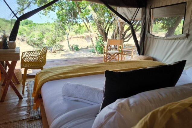 Julia’s River Camp is a tented safari lodge located along the banks of the Talek River, within the Masai Mara National Reserve (about 8 km from Talek Gate). The camp features 28 elevated tents across three sections—Hippo Camp, Buffalo Camp, and VIP Camp—each offering en-suite bathrooms, private verandahs, solar lighting, and views over the river. Guests can choose between a “full board” plan (meals included) or a “game package” that also includes two daily game drives. There’s also the possibility to add a hot air balloon safari for a bird’s-eye view of the Mara (price on request).