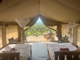 Semadep Mara Camp is an eco‑friendly safari camp located just a short distance from the Sekenani Gate to the Masai Mara National Reserve. The camp has a relaxed, bush‑style vibe with permanent tents and optional camping, combining comfort with authentic outdoor living. Each tent is equipped with beds, en‑suite bathroom facilities (including flush toilets and hot showers), and safari‑style verandas to enjoy panoramic views of the wilderness. Meals are locally sourced and traditionally prepared, and evenings around the campfire offer a perfect way to unwind after a day of adventure. Airport pick‑up, 24‑hour electricity, guided tours, and secure onsite parking are also available.
