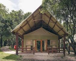Comfortable raised safari tents with en-suite facilities including hot showers and flush toilets.